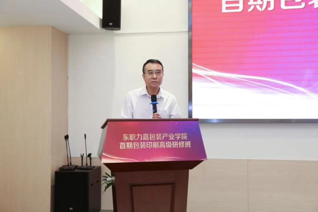 5月14日上午,东职-力嘉包装产业学院“首期包装印刷高级研修班”正式开班,副校长刘海光出席并致辞。