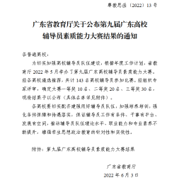本次大赛由广东省教育厅主办、高校思想政治工作队伍培训研修中心、珠海科技学院共同承办,共有来自全省的143名选手参赛。经过省初赛(基础知识测试)、省决赛(案例研讨、谈心谈话),共决出一等奖10名、二等奖20名、三等奖30名。