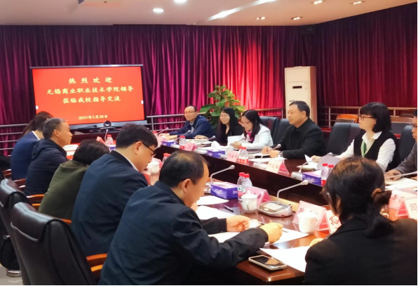 3月28日下午,无锡商业职业技术学院党委委员、副院长朱璋龙一行8人来我校考察交流。我校党委委员、副校长杨云奇及发展规划办、教务处、产教融合办、质量办、经济与管理学院等负责人在行政楼B415会议室接待了来宾。