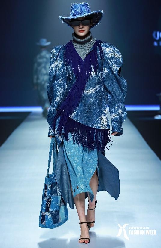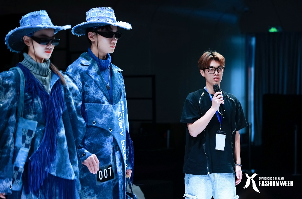 此次入围总决赛专科组的13组作品分别来自于省内13所院校,专科组设置金、银、铜奖各1名,优秀设计奖3名。陈绍浪同学的作品《Journey》主打“环保概念”,主要采用工厂废弃牛仔布料,添加流苏、亮钻、文字胶贴等时尚设计元素,通过解构、拼接、镂空等工艺创意性地表达绿色环保和时尚可持续发展理念,赢得了在场评委、嘉宾和观众的好评和热烈掌声。比赛期间,陈绍浪同学还接受了广州电视台记者的采访,希望能够通过作品让更多人认识到时尚产业可持续发展的重要性。