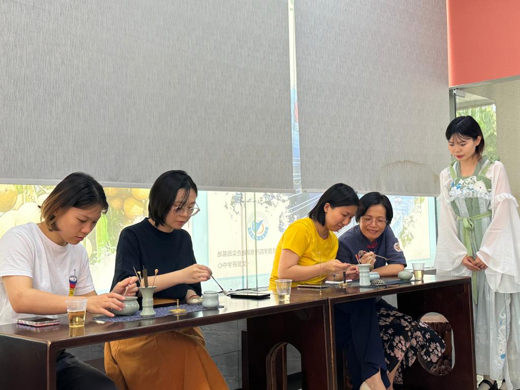 长达两个小时的活动中,老师们体验了十道工序的古法香篆,并采用腹式呼吸法,凝神静气在香气缭绕中品7杯申时茶,在冥想中让身心得到完全的放松,为心灵减压赋能。