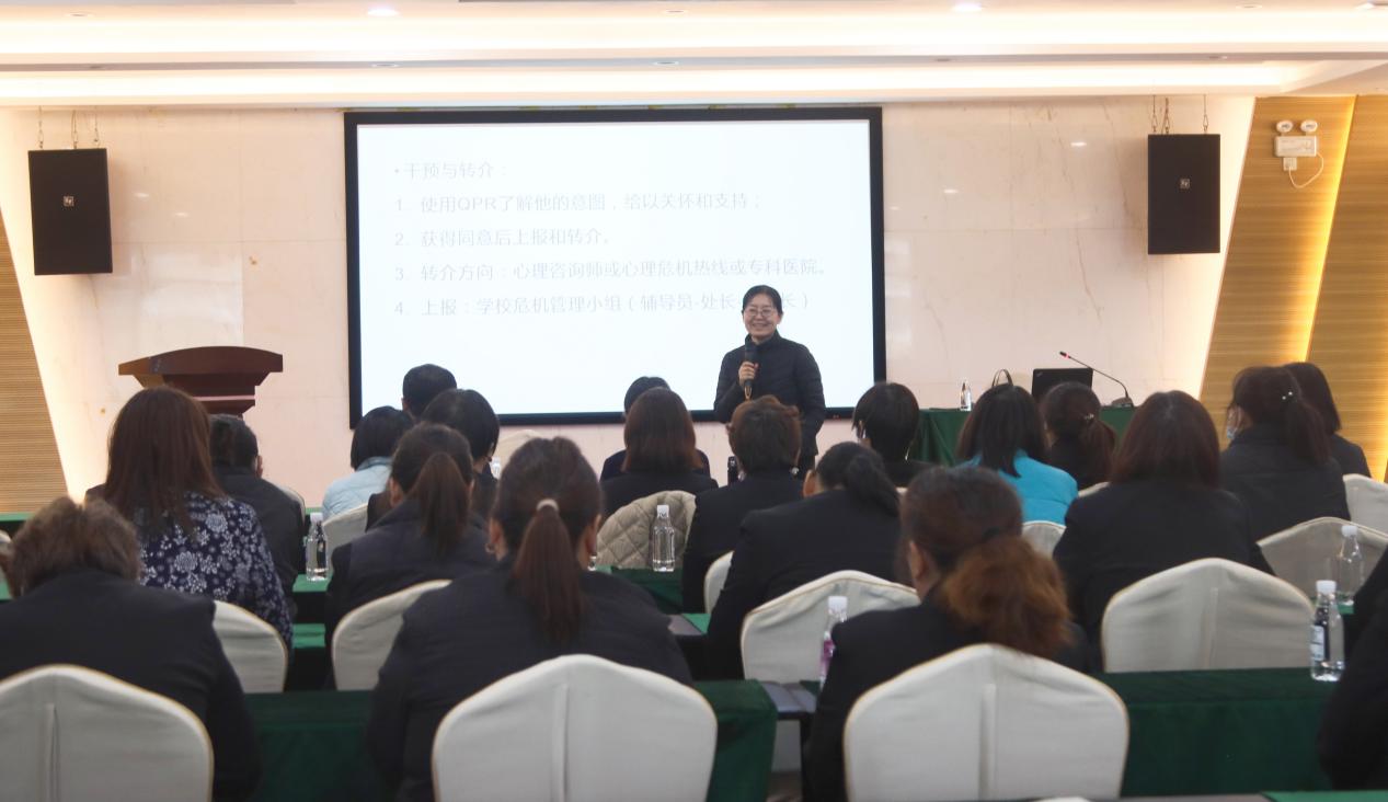 褚成静老师介绍了心理健康的表现,心理危机诱因和识别,自杀的迹象及如何开展危机干预,结合高校常见的心理危机事件进行讲解,并在现场邀请学生和宿舍管理人员演绎危机情况下的干预技术。受训人员表示这样的培训很有启发。
