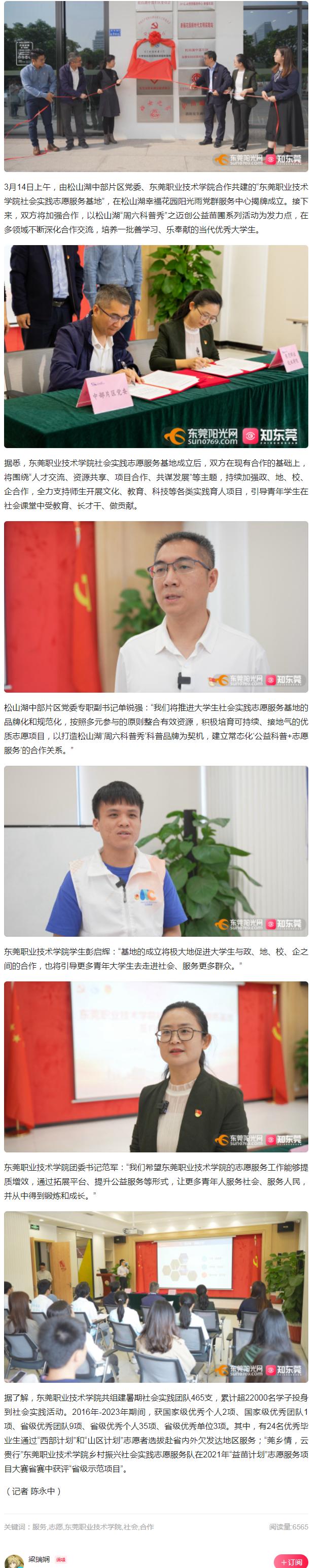 【知东莞】探索校地合作新模式!松山湖中部片区党委与东职院共建社会实践志愿服务基地